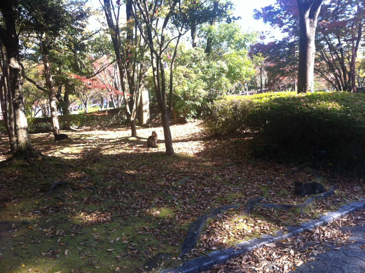 山口の県立美術館の公園でのスナップ。猫たちがひなたぼっこしていました。